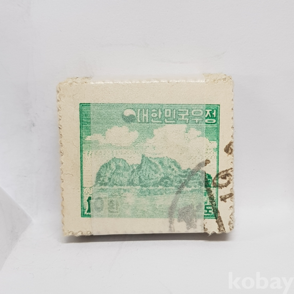 - 약100매 / 1954년 독도풍경 10환 보통우표 일부인 미확인 사용제 우표 약 100매 묶음