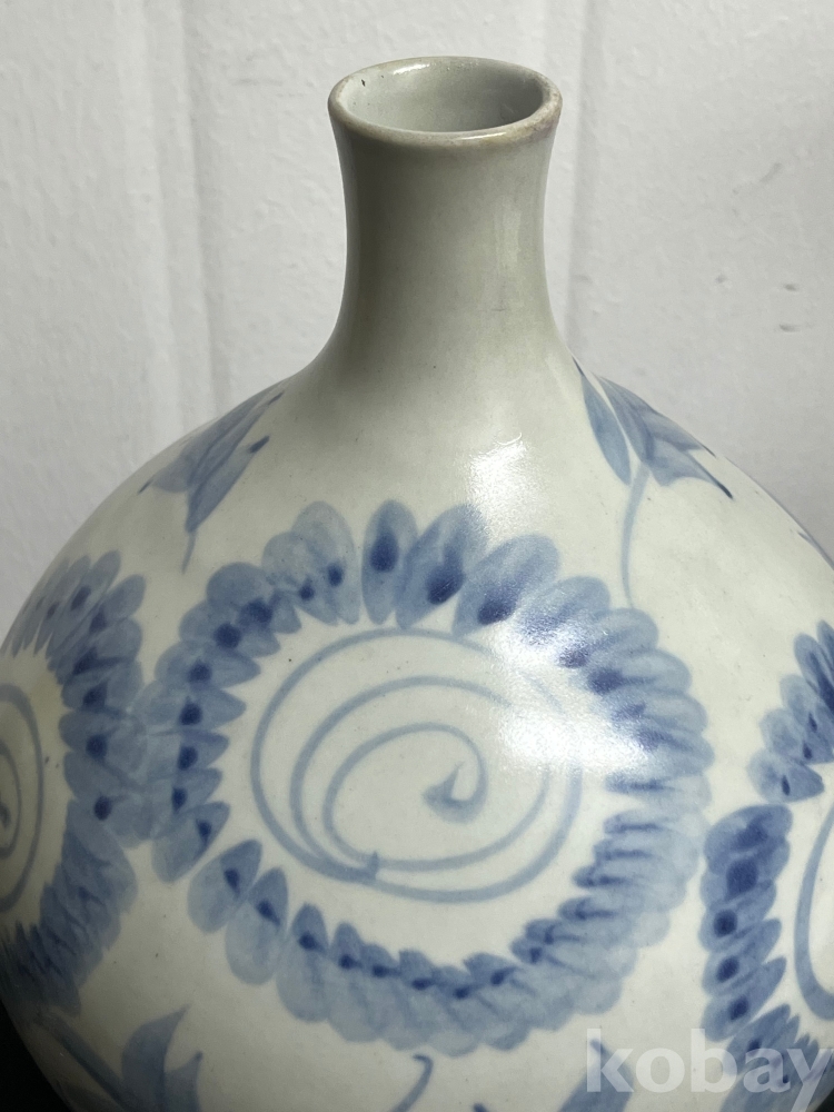 청화로 그려진 화훼문은 농담의 변화를 통해 여백과 어우러져 차분한 운치를 자아냅니다