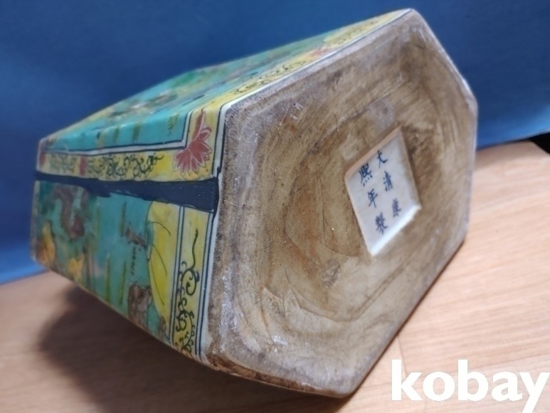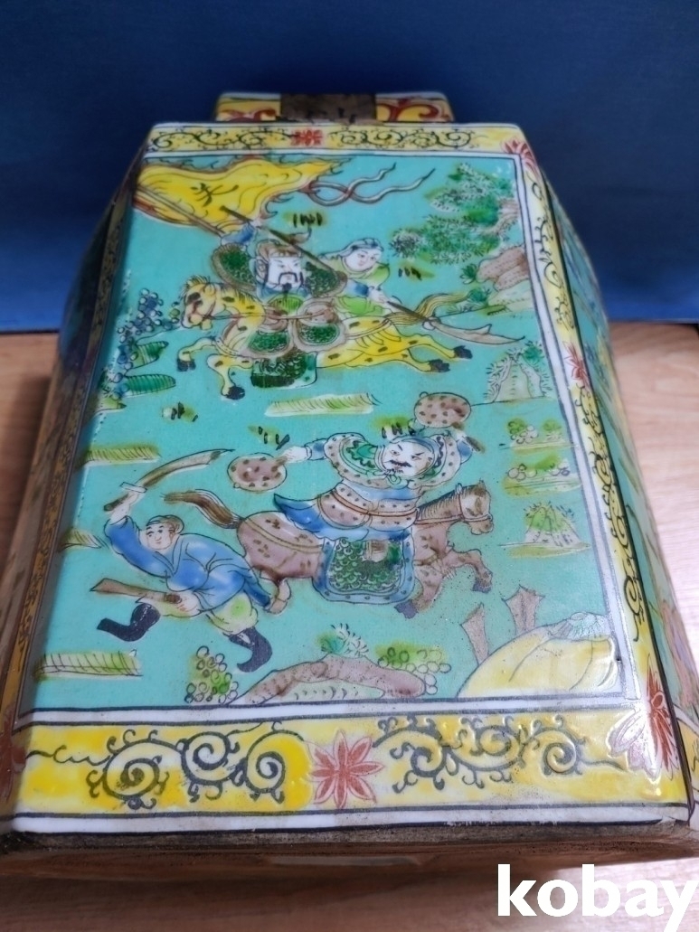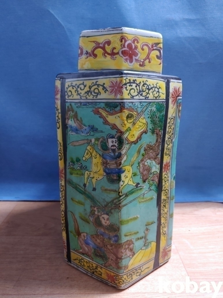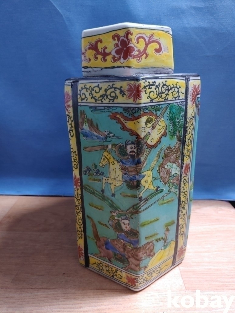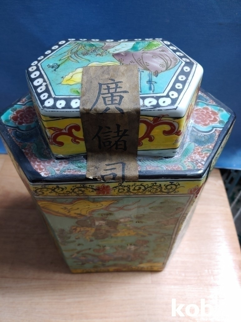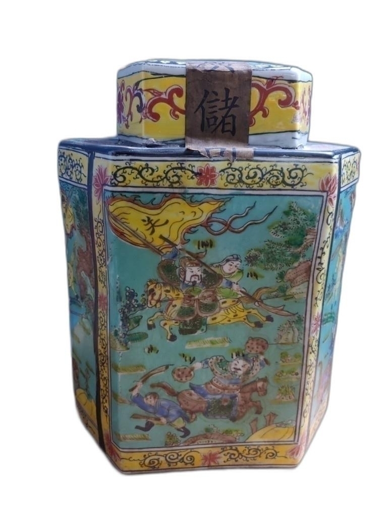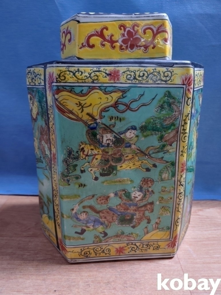 수렵도 도안이 있는 육각 보이차 도자기 입니다.