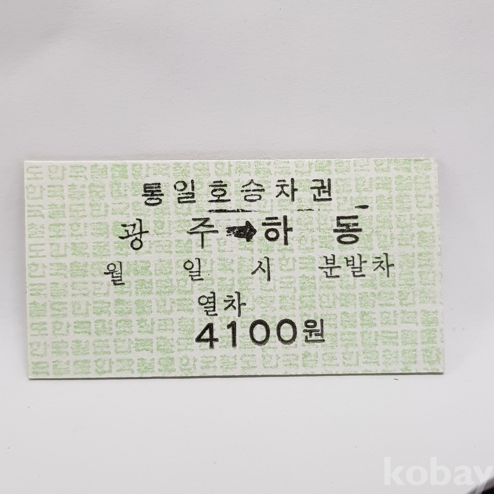 - " 광주 ▶ 하동 " 미사용 통일호 승차권 4100원