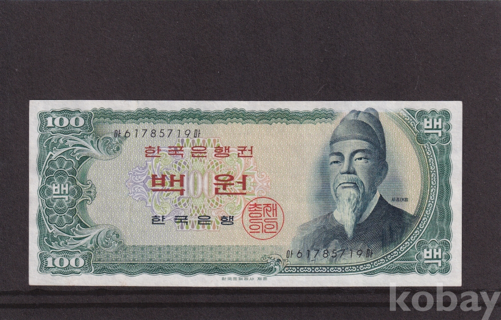 - 한국은행 1965년 세종 백원 61포인트 극미(+)지폐