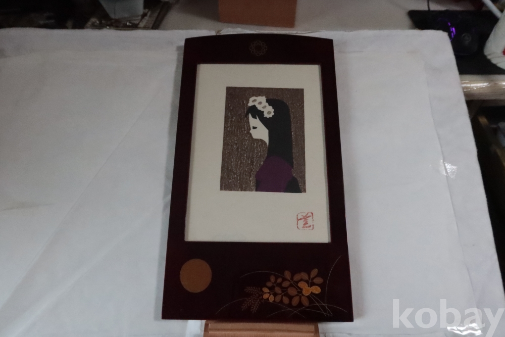 일본 목판화 화가 가오루의 명화 임니다 목판화의 효과 등등 당대의 명화 임니다 화가의 낙관을 가진 진품 임니다 액자 역시 칠기 처리 된 명품 임니다 칠기상 미세한 스크래치 등이 보이며 뒤에도 없어진 부분이 보임니다
