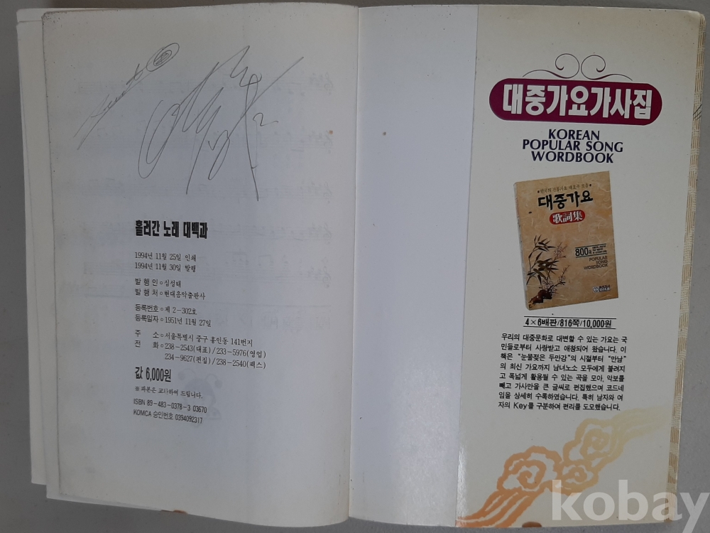 흘러간노래 대백과-심성태 편저 1994년초판 현대음악출판사 발행