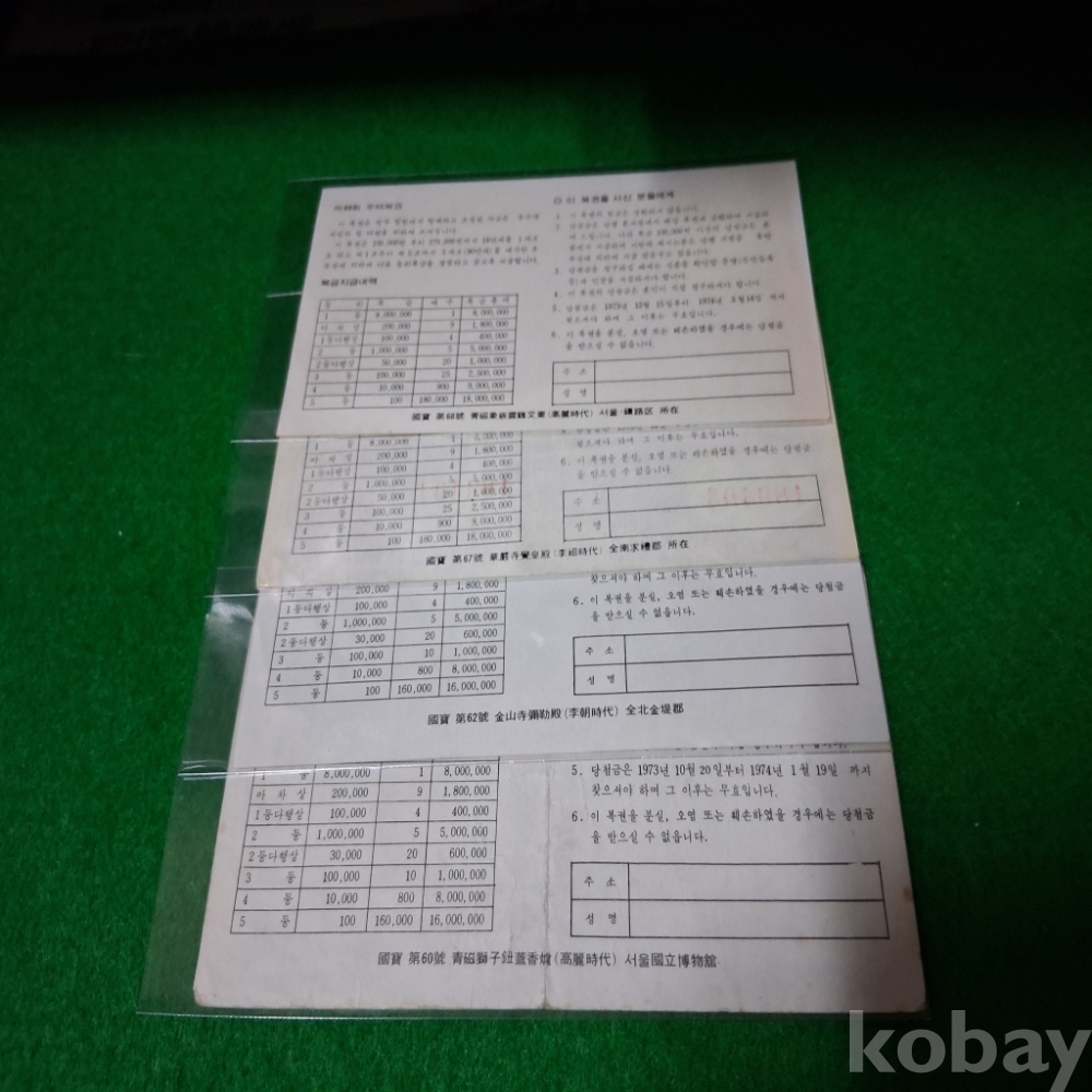 주택복권 91,93,98,99회 4매 사용제