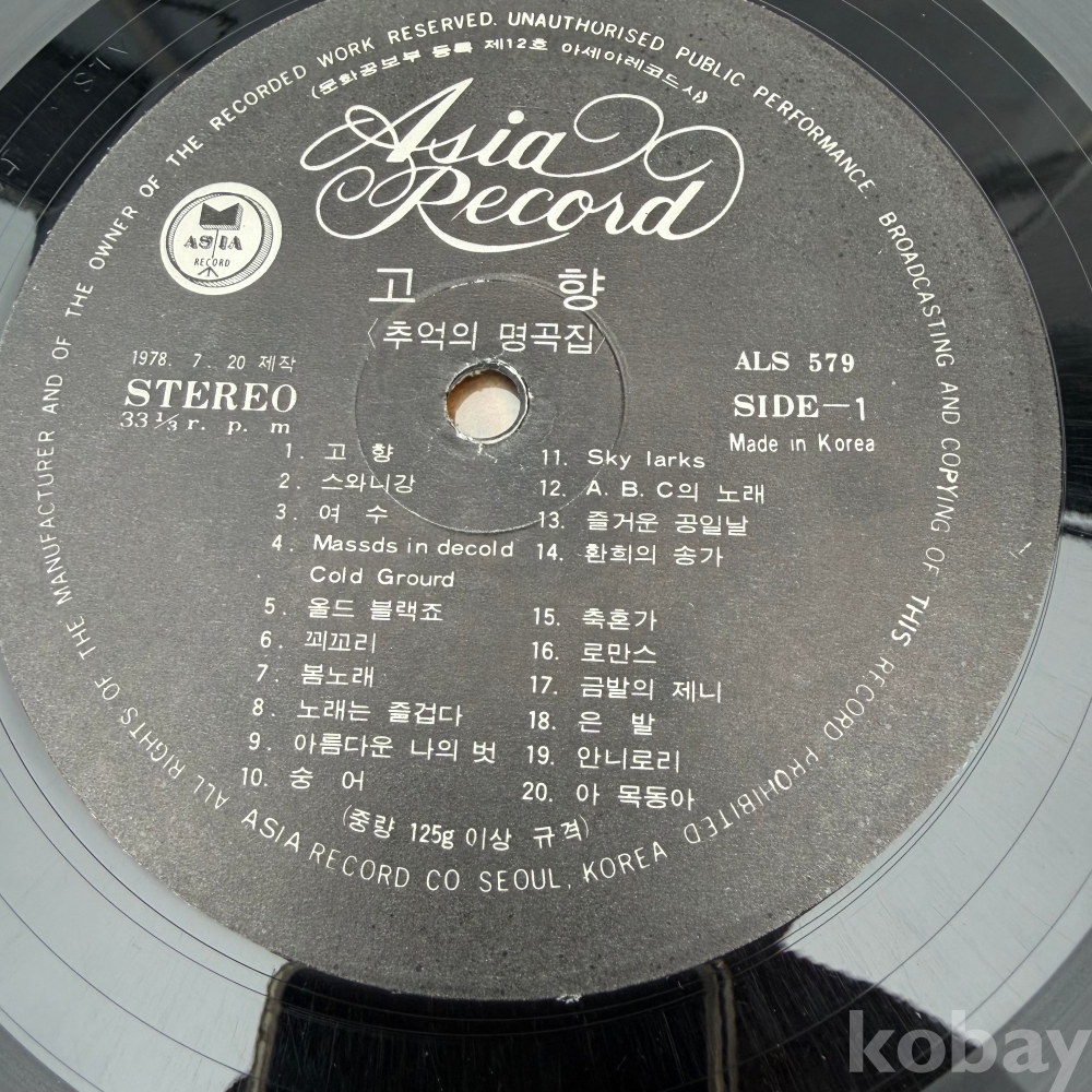 추억의 명곡집 제1집 꿈속의 고향 LP 입니다.