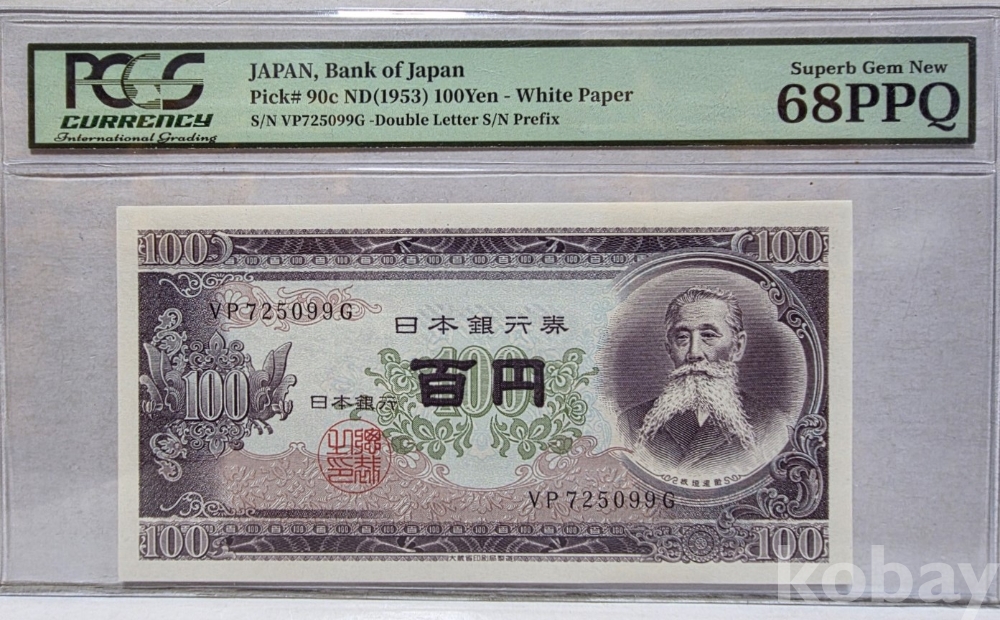 -1953년 일본 100엔 지폐 POGS68 등급 입니다.