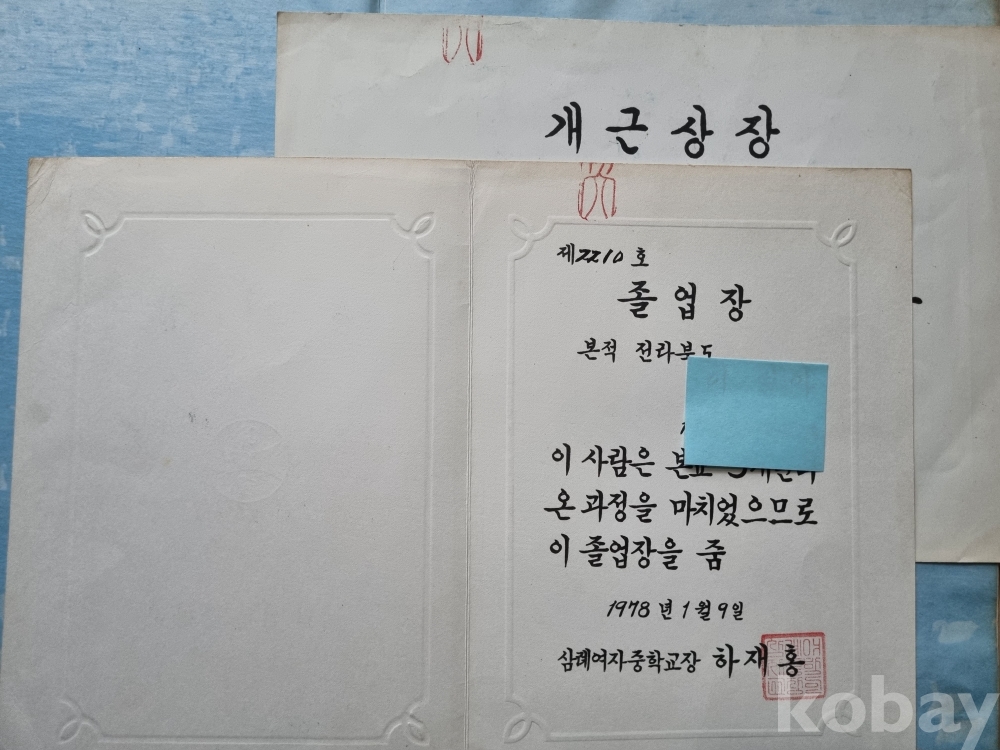 원소유자분의 졸업장 및 상장 1매도 같이 들어 있습니다.