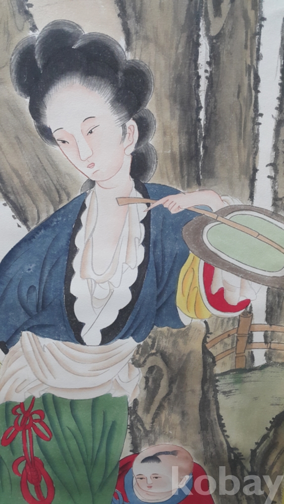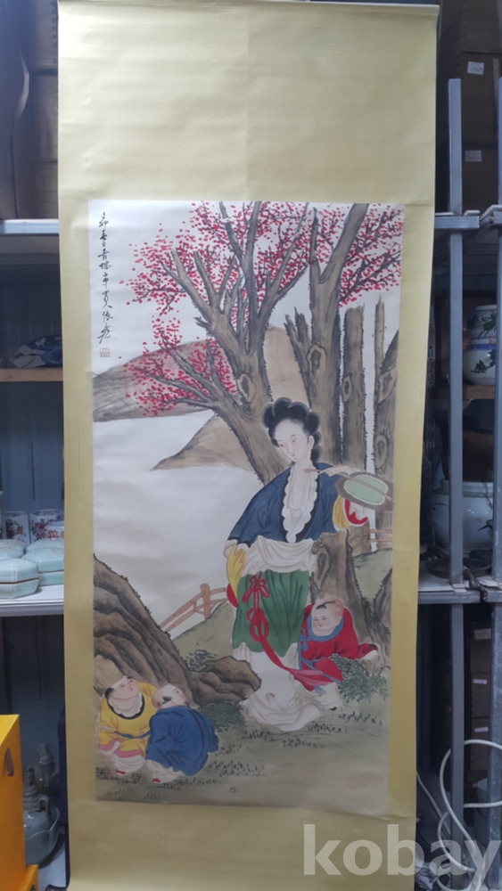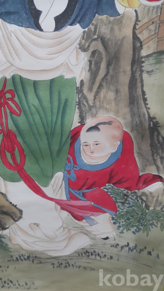 p-131.장대천의 동자와 미인도족자(수공으로그린그림)미감정