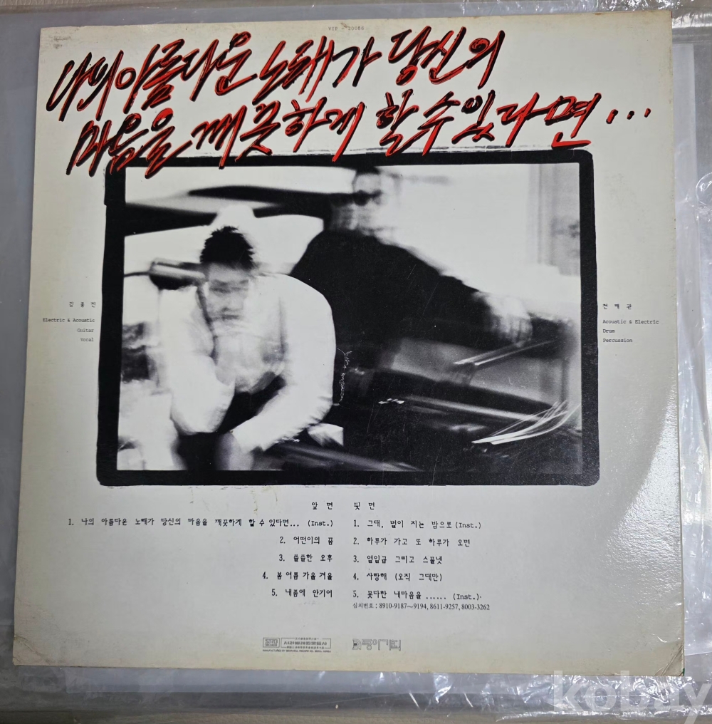 모든 음반은 등록전 청음후 세척하고/배송시 세척을 다시한번 하고 비닐이 더러우면 다른비닐로 교체후 발송합니다