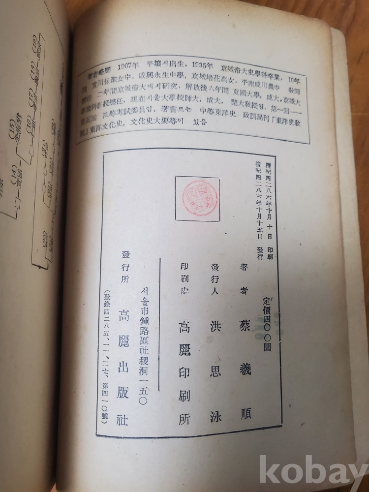 1. 동양사개론, 채희순, 고려출판사, 1953년, 444쪽, 상태 상, 사진 참조
