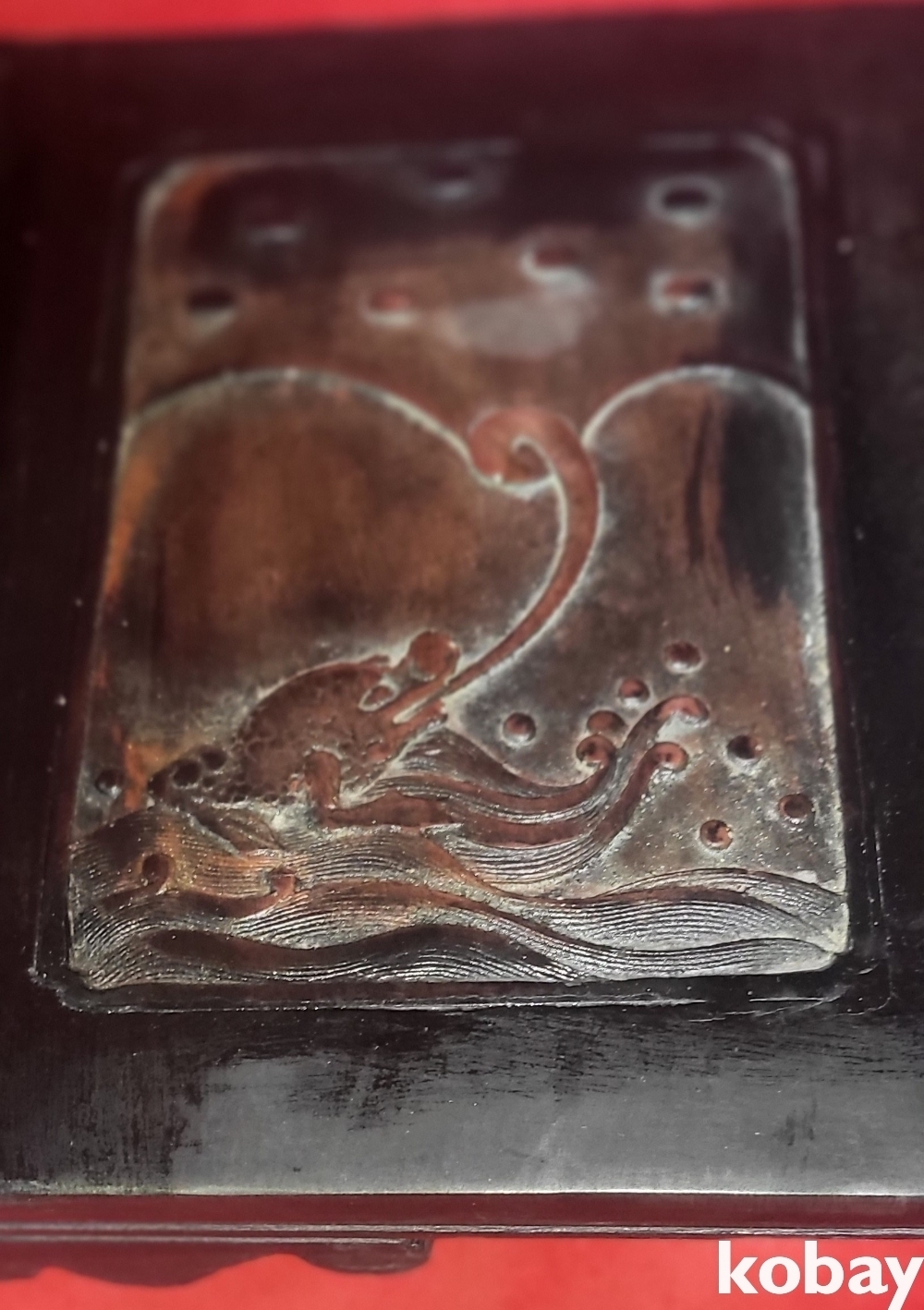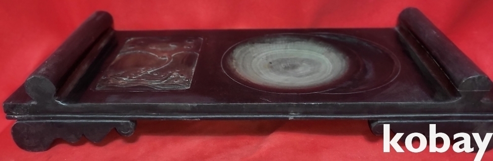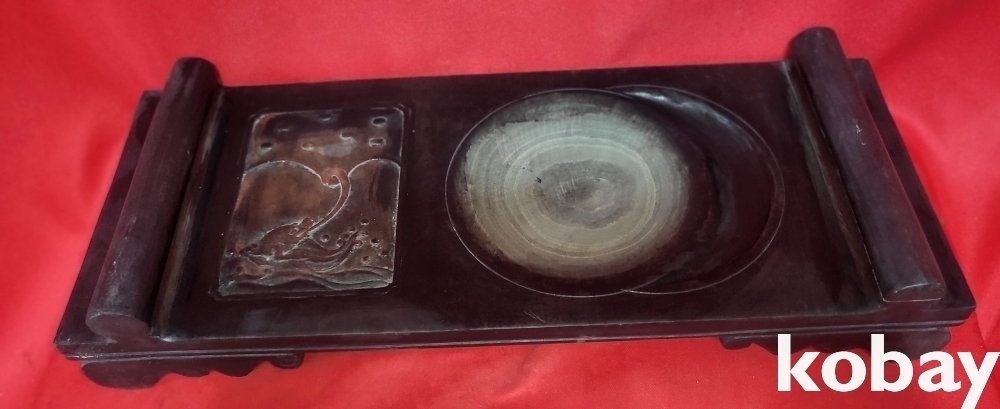 건륭6년 관지 보이는 등용문의 상징 물고기와 문양 일월(日月) 벼루입니다,