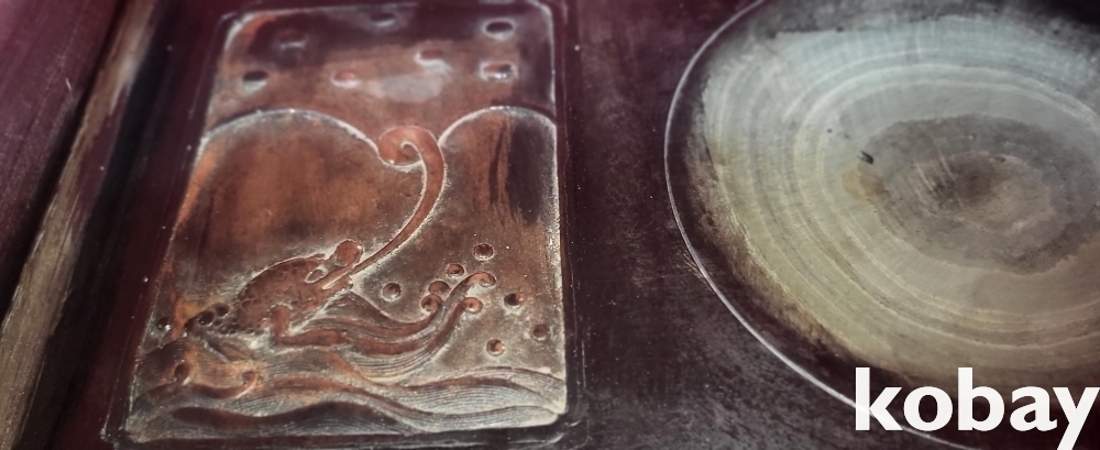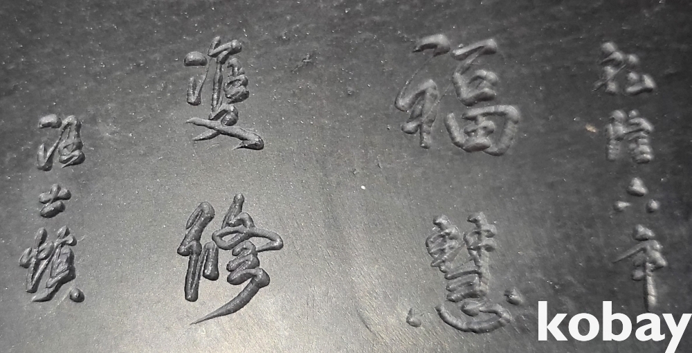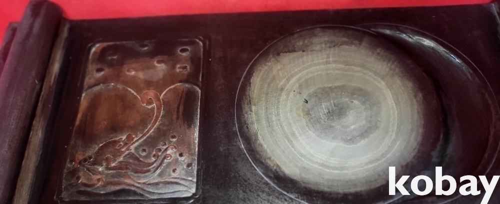 먹을 갈으는 곳 상단에 눈섭처럼 보이는 것이 초승달(月)이며 아래 둥근 것은 해(日)를 표현한 것입니다,