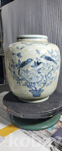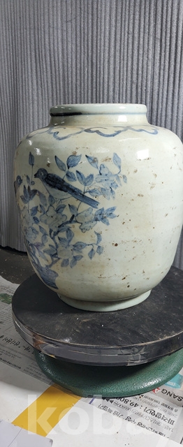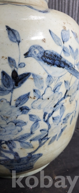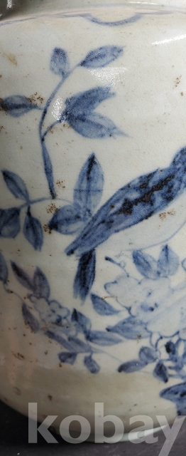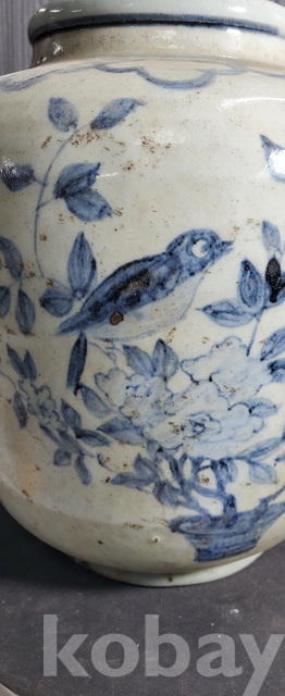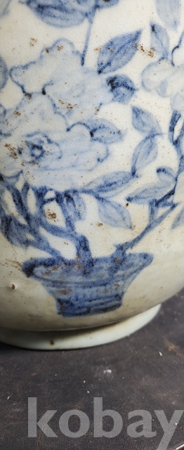 다-150-2.오래된 수작업으로만들고 도공이그린목단 화조문 청화백자항아리