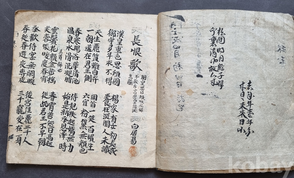 당나라 시인 백거이의 대표작 **'장한가(長恨歌)'**를 비롯하여 엄선된 한시들이 수록된 필사본입니다.