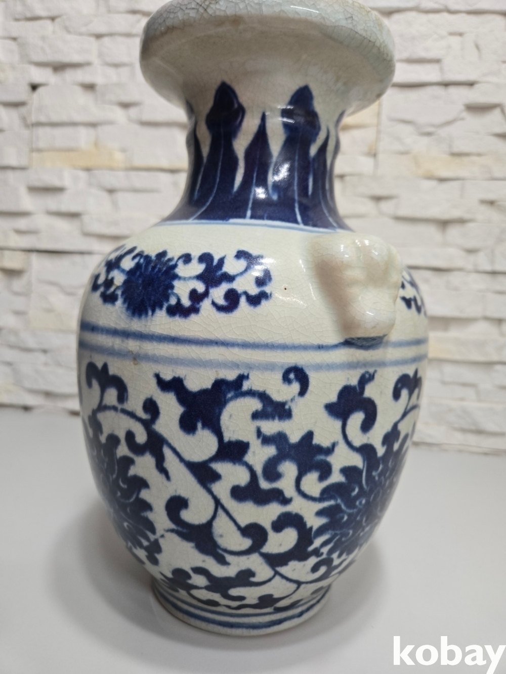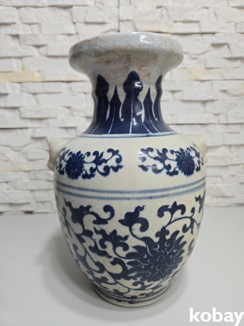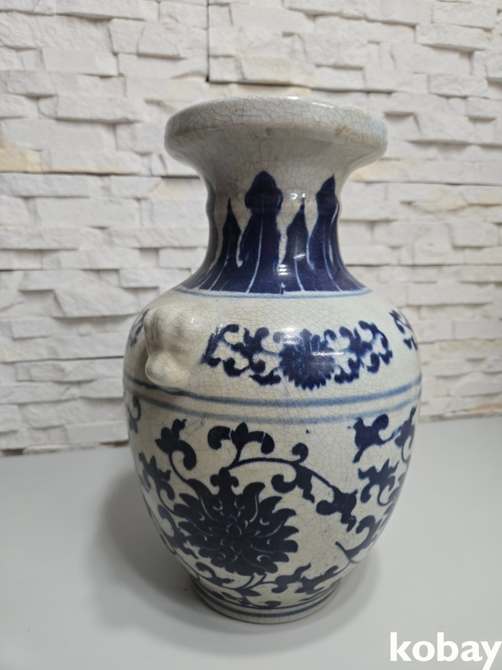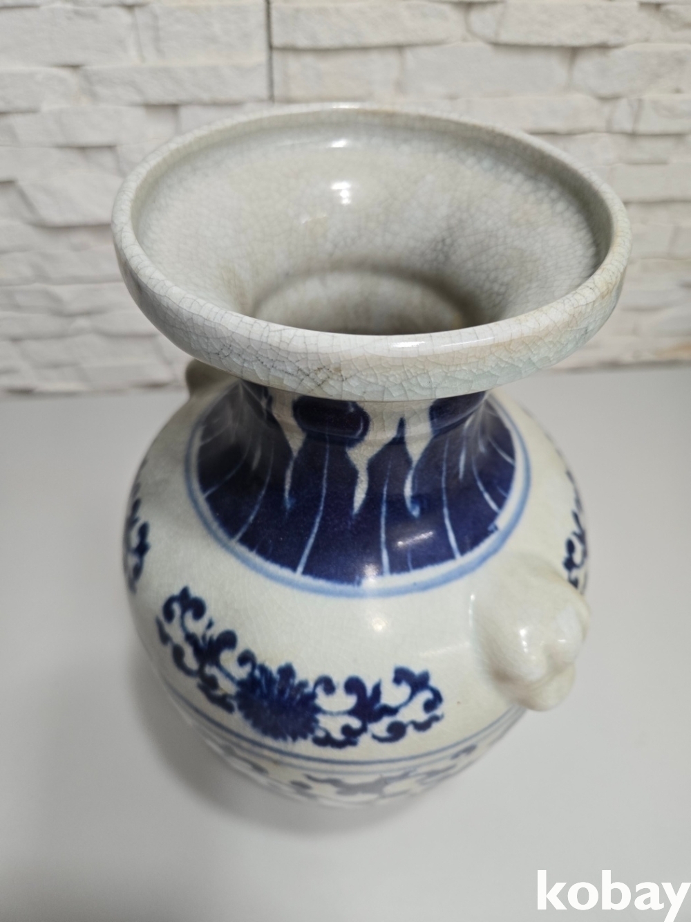 동물 머리가 달린 입이 큰 도자기 입니다.