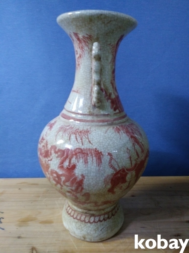 수렵도 도안이 있는 양이 도자기 입니다.