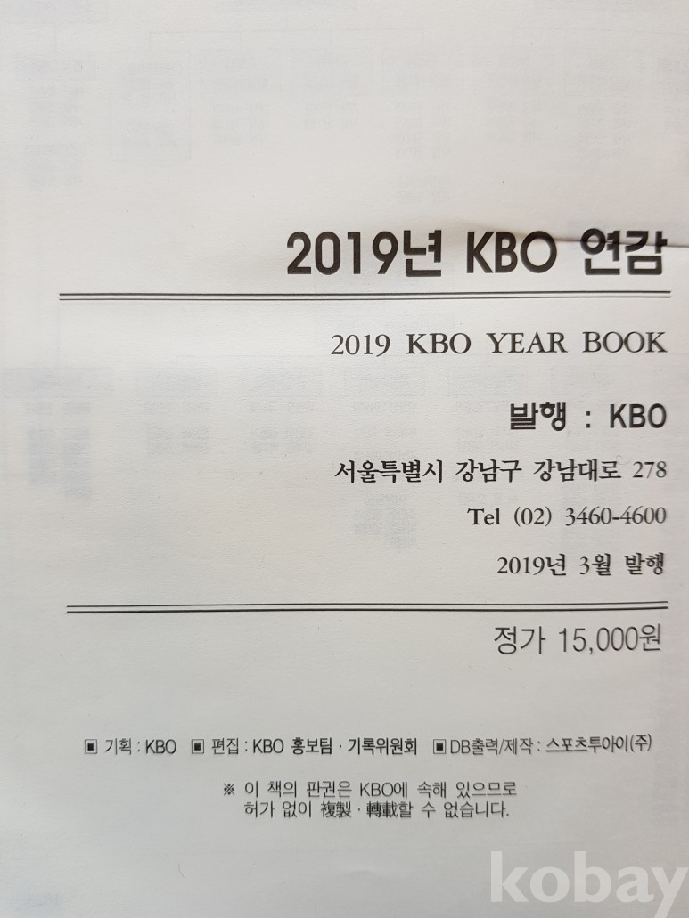 제목: 2019 프로야구 KBO OFFICIAL YEAR BOOK 연감 판매