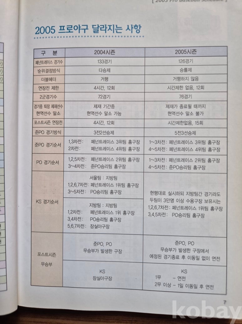 저자/발행: KBO 한국야구위원회 , 발행일: 2005.03.01 , 규격: 10.5 * 14.7cm , 페이지: 132 , 상태: 미사용 상태 최상급 , 정가: 비매품 , 수량: 1권 있음
