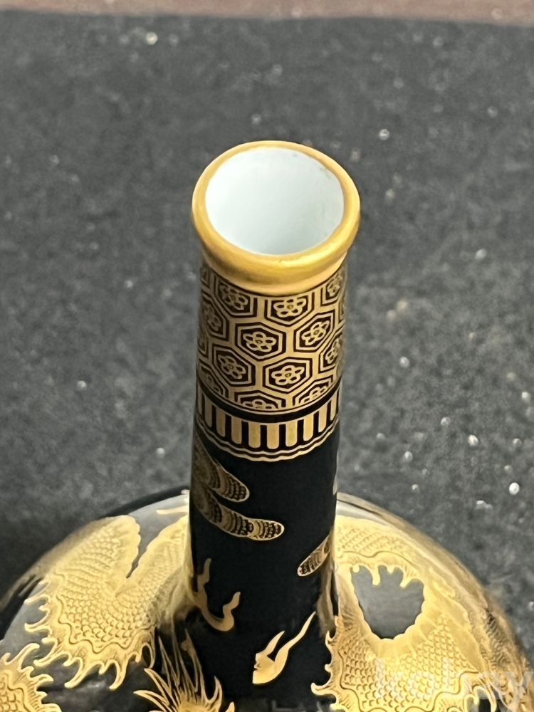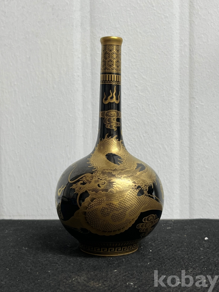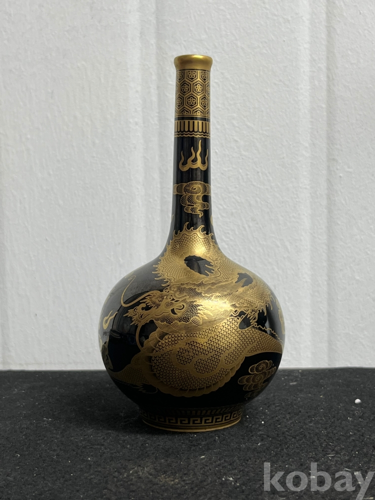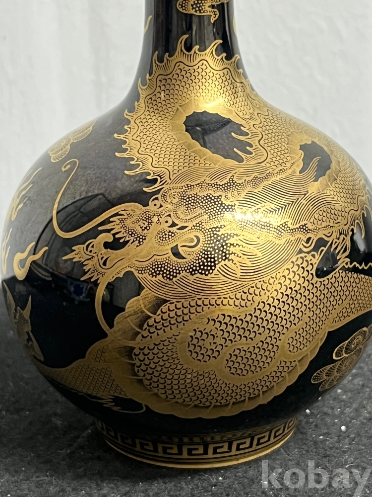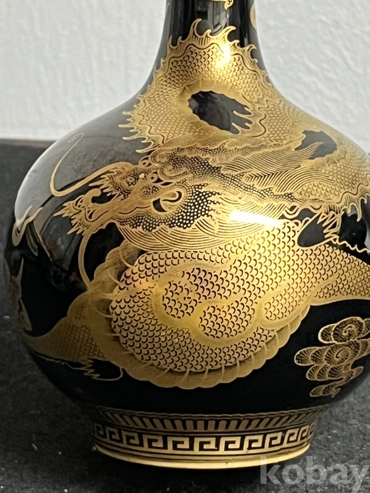 깊은 흑유 바탕 위에 금채로 용과 구름을 화려하게 시문한 작품입니다.