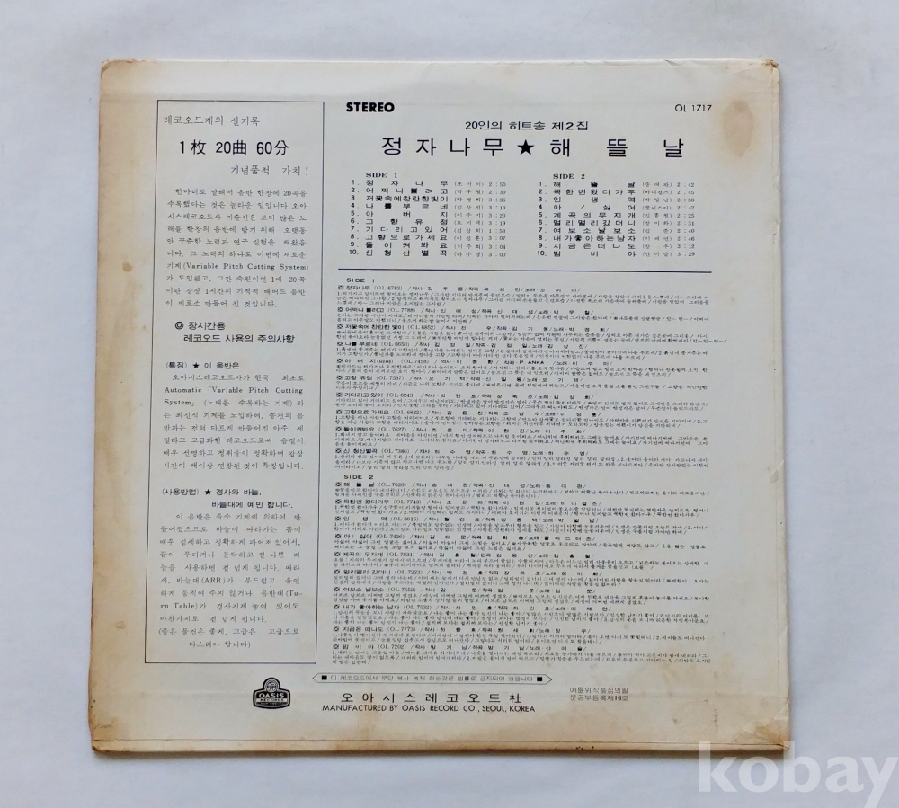 EX : 약간의 마모, 모서리 찢김 존재 음반상태