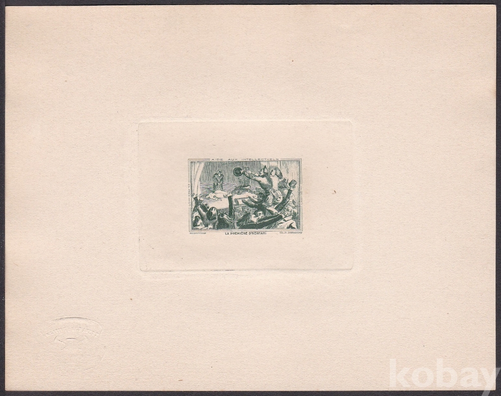 (하늘천) 프랑스 파리 1943년 비네트, 지식인 지원, 에르나니의 초연 (La Premiere D'Hernanii), 장 이냐스 이지도르 그랑빌 (1803-47), 미술, 그린 컬러 다이 프루프