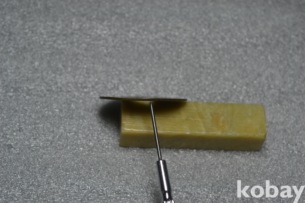 ㅡ> 사진상으로는 잘 안보일수 있지만 엽전이 작은 눌림흔적이 있는 상태 입니다. (7시방향 검은핀으로 가르킨 부분 사진참조)