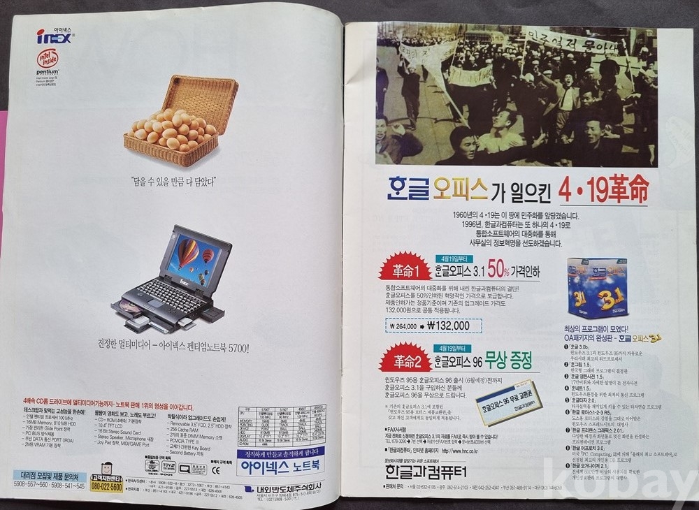 한글 오피스 96 등 90년대 중반 PC 하드웨어와 소프트웨어의 변천사를 한눈에 확인 가능.