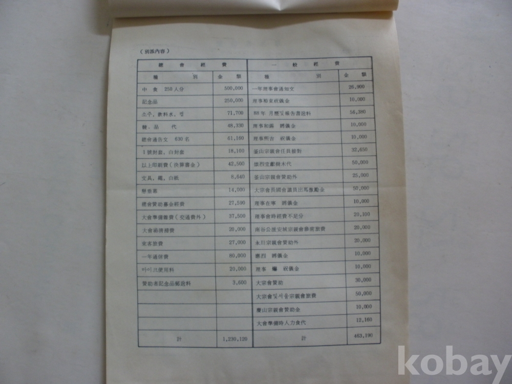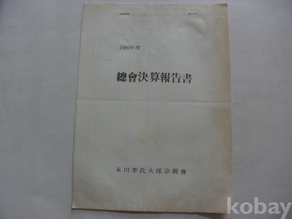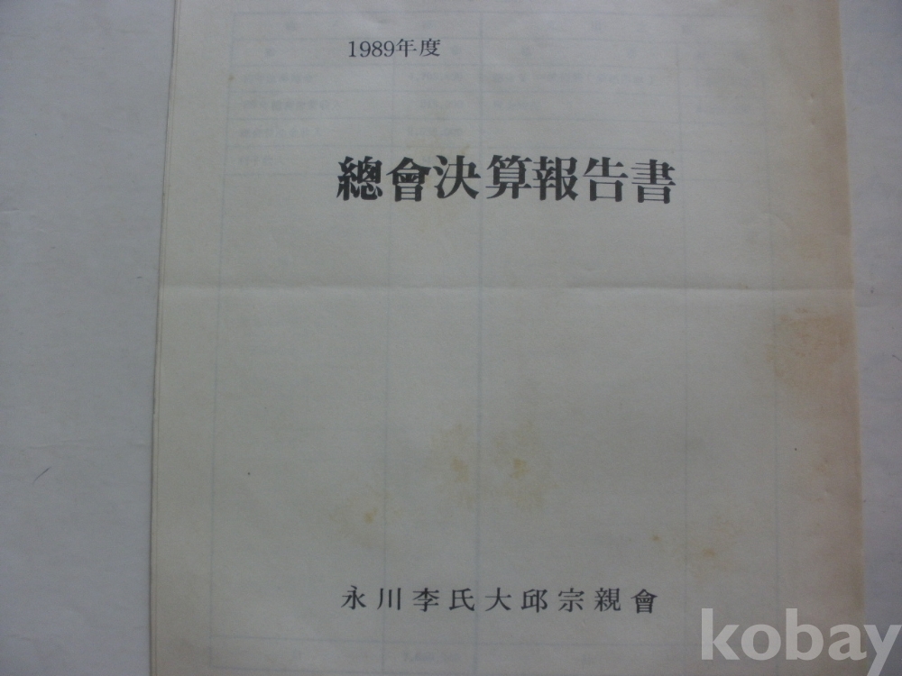 영천이씨 대구종친회 - 총회결산보고서 (1989년도)