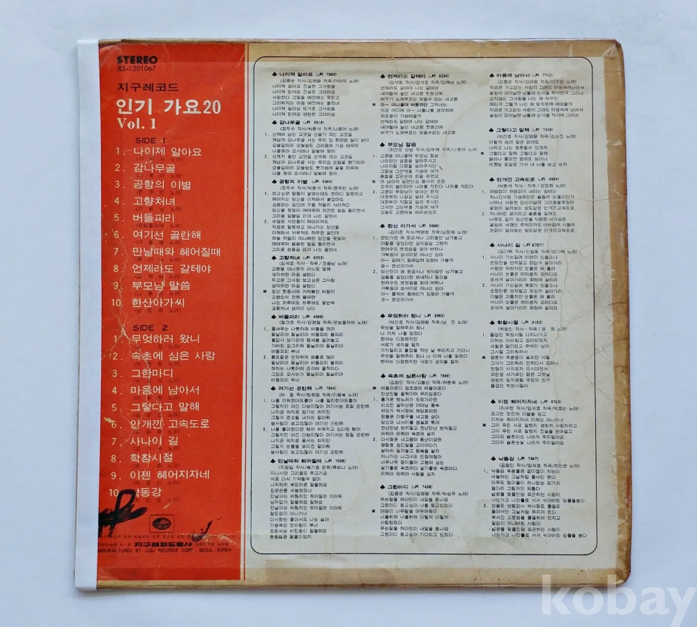 | 자켓상태 | VG : 주름, 접힘, 모서리 찢김 다수 | 음반상태 | EX : 재생에 영향 없는 가벼운 기스 존재 | 발매정보 | 알수없음 | 가사지여부 | 무 |