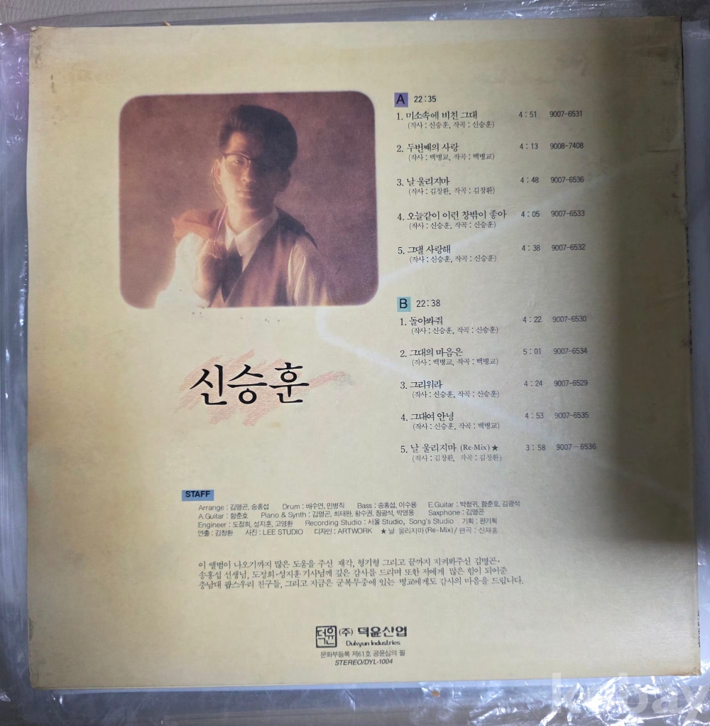 모든 음반은 등록전 청음후 세척하고/배송시 세척을 다시한번 하고 비닐이 더러우면 다른비닐로 교체후 발송합니다