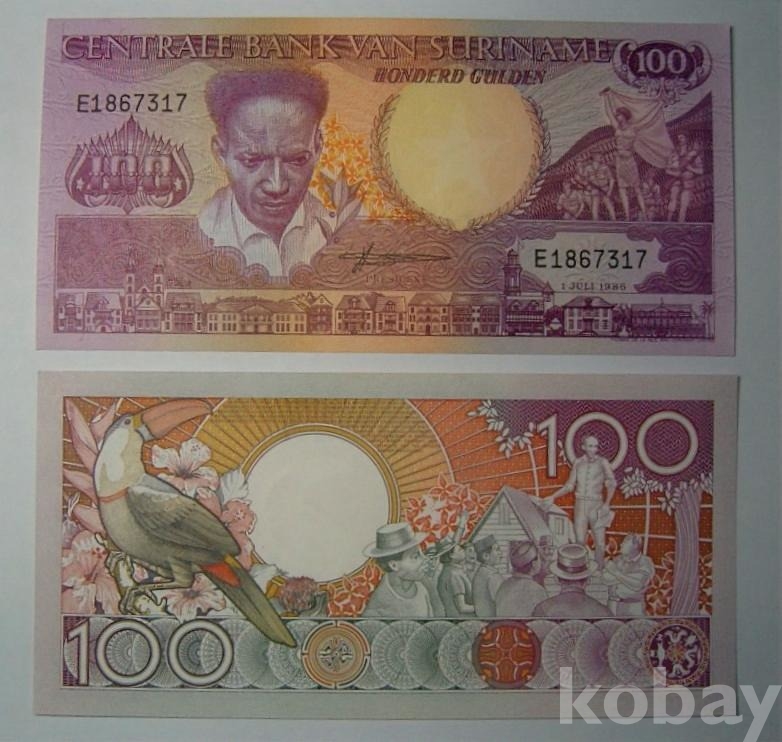 수리남 100굴덴 1986년 X 5 (다섯)장 판매 &&& 아름다운 지폐 $$$