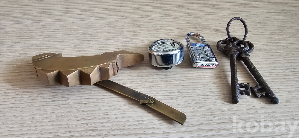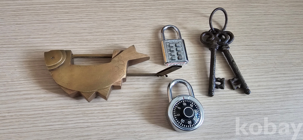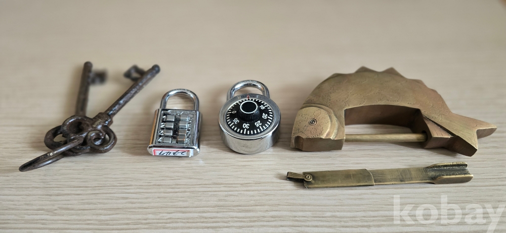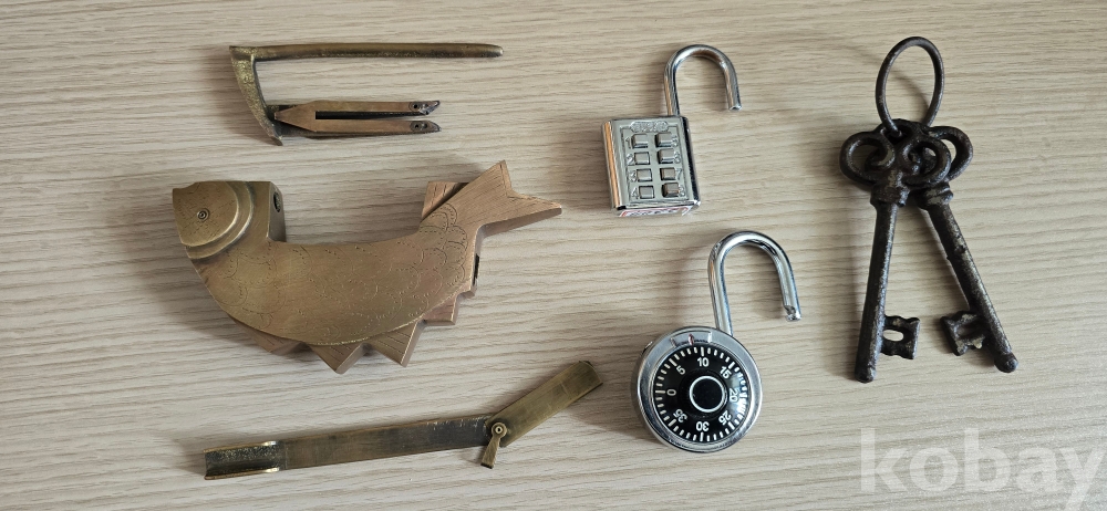 @. 상태 완전한 여려가지 자물통과 엔틱 열쇠.