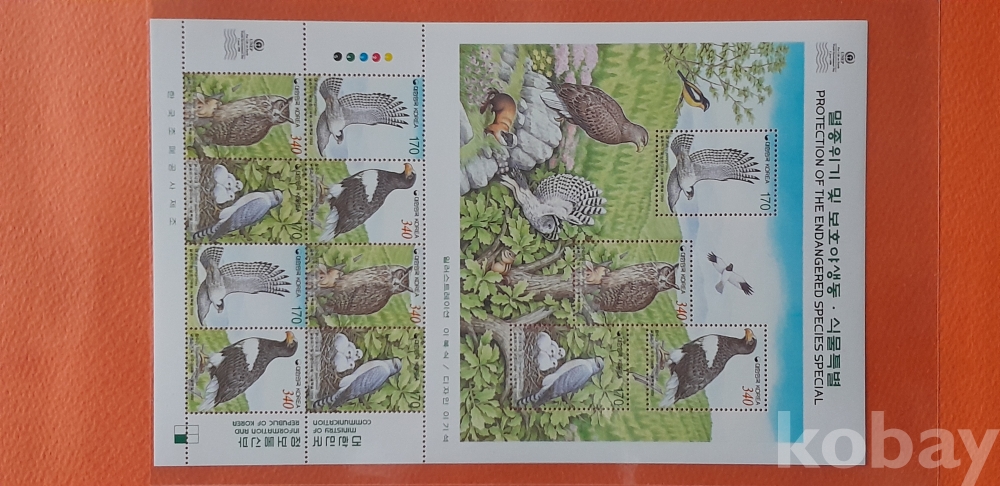 1999년 발행 멸종위기 및 보호야생동.식물 12매 전지 입니다.