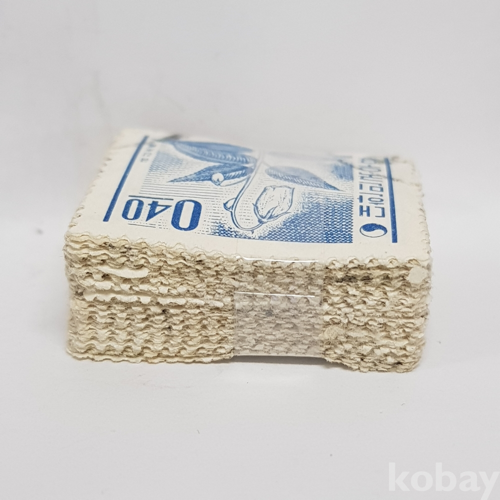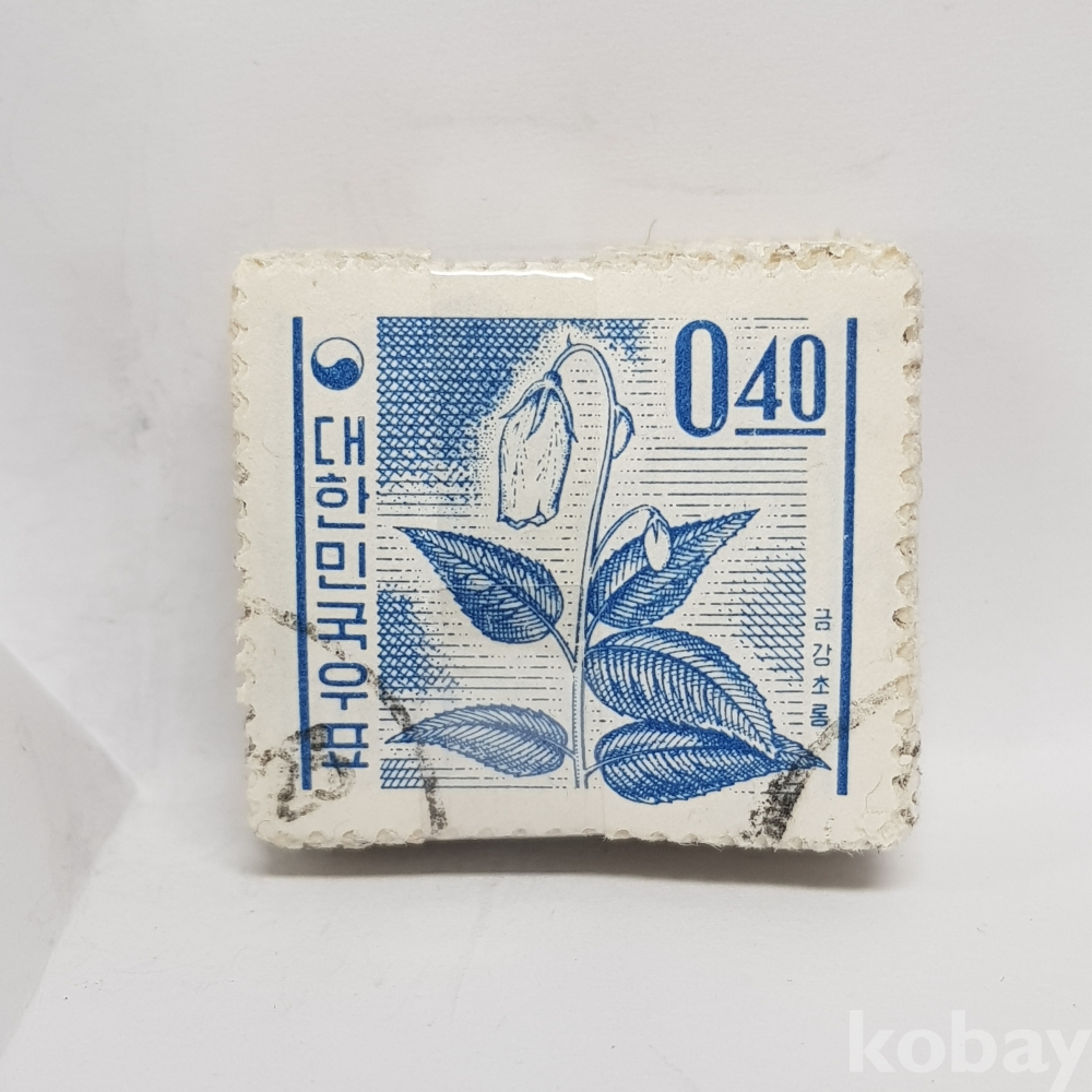 - 1963년 새 원화 금강초롱 4원 보통우표 일부인 미확인 사용제 우표 약 100매 묶음