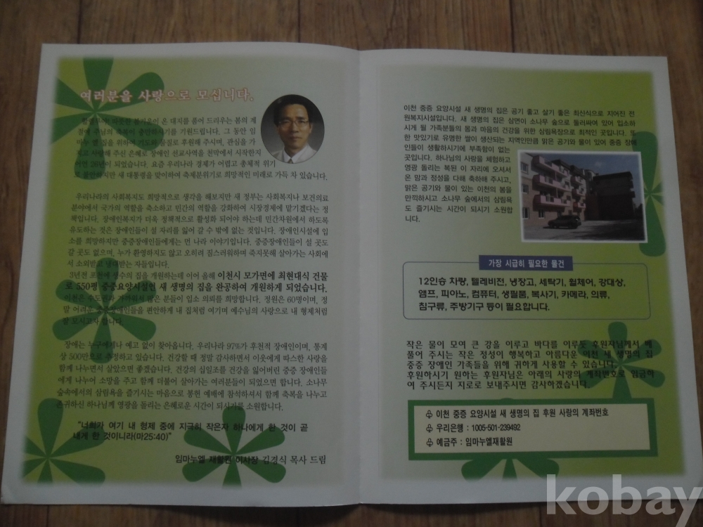 2008년 이천 새생명의집 봉헌예배 초청장