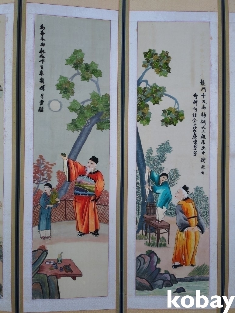 년대감이 있어 보이는 10폭 자수 병풍 입니다.