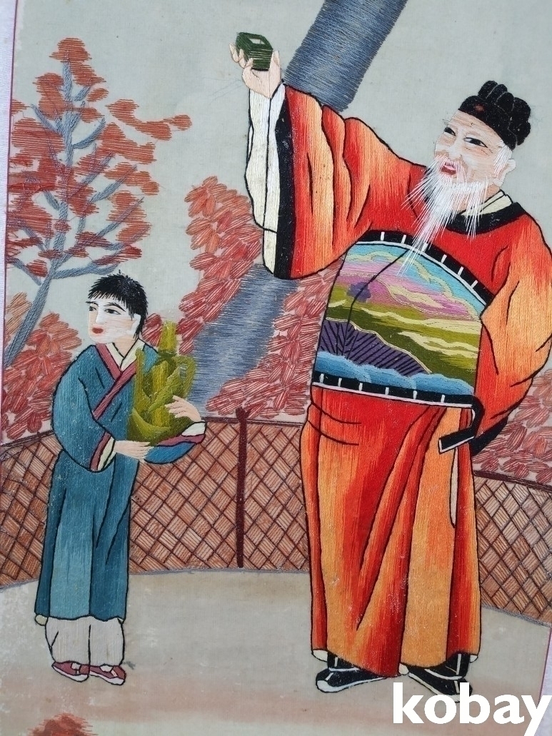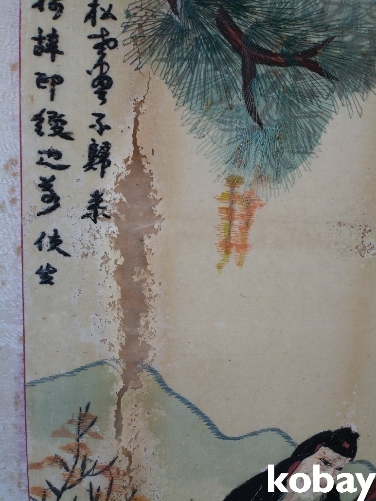 바탕 천은 좀이 슬었는지 헤짐이 있습니다.
