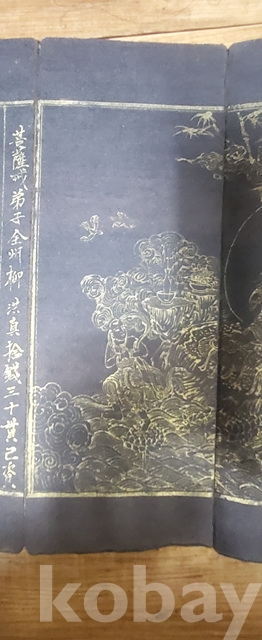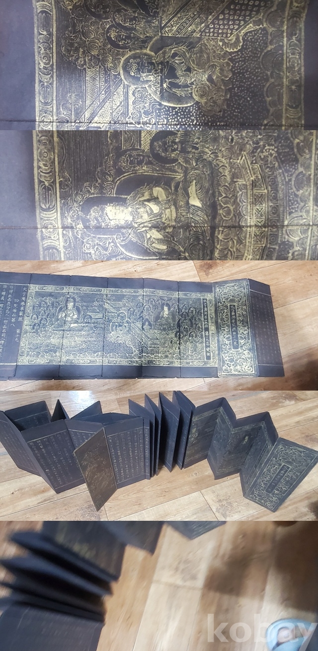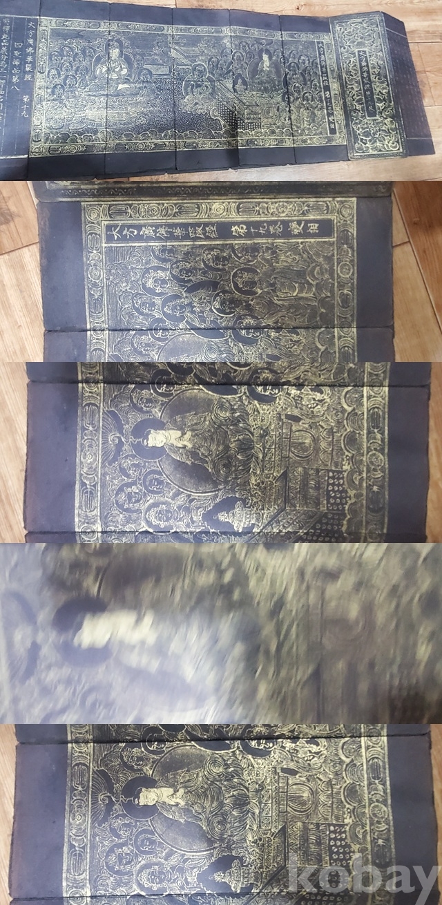 다-24.엄청긴섬세하게 금가루로 부처님그림과 불경이 적힌 대방광불화엄경 금사경 19권