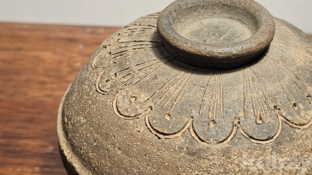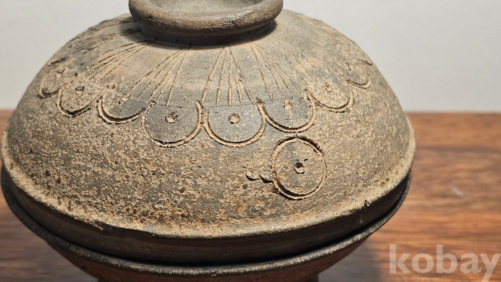 특징: 뚜껑과 문양이 온전한 삼국시대 경질 토기입니다.