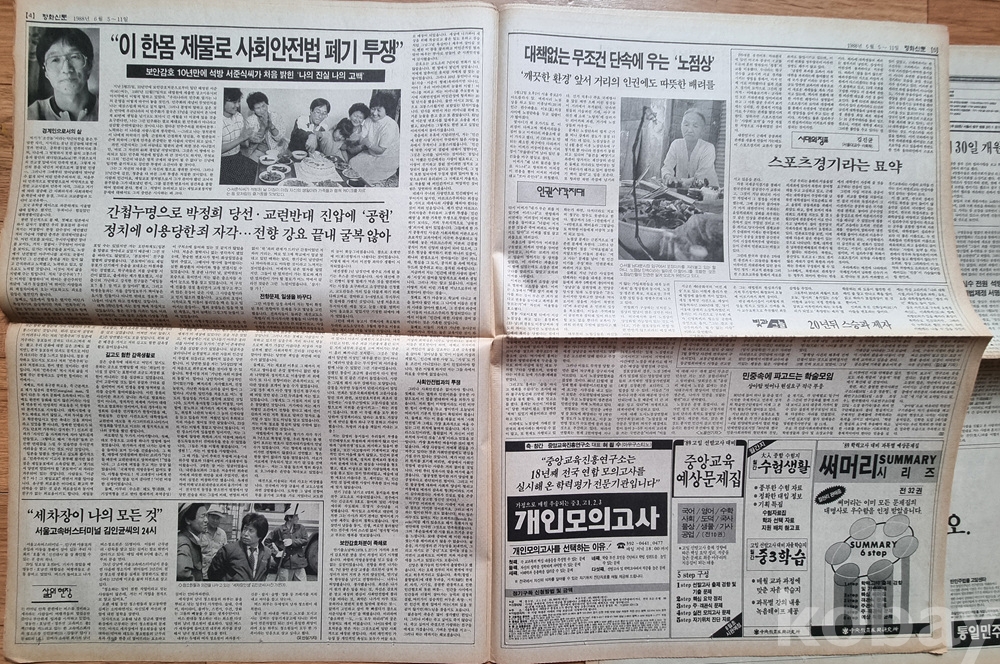 서준식 씨 석방 기사 등 80년대 후반 민주화 이행기의