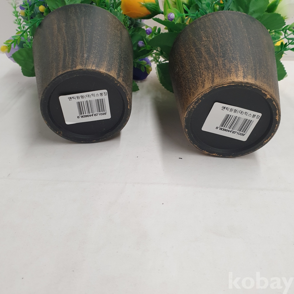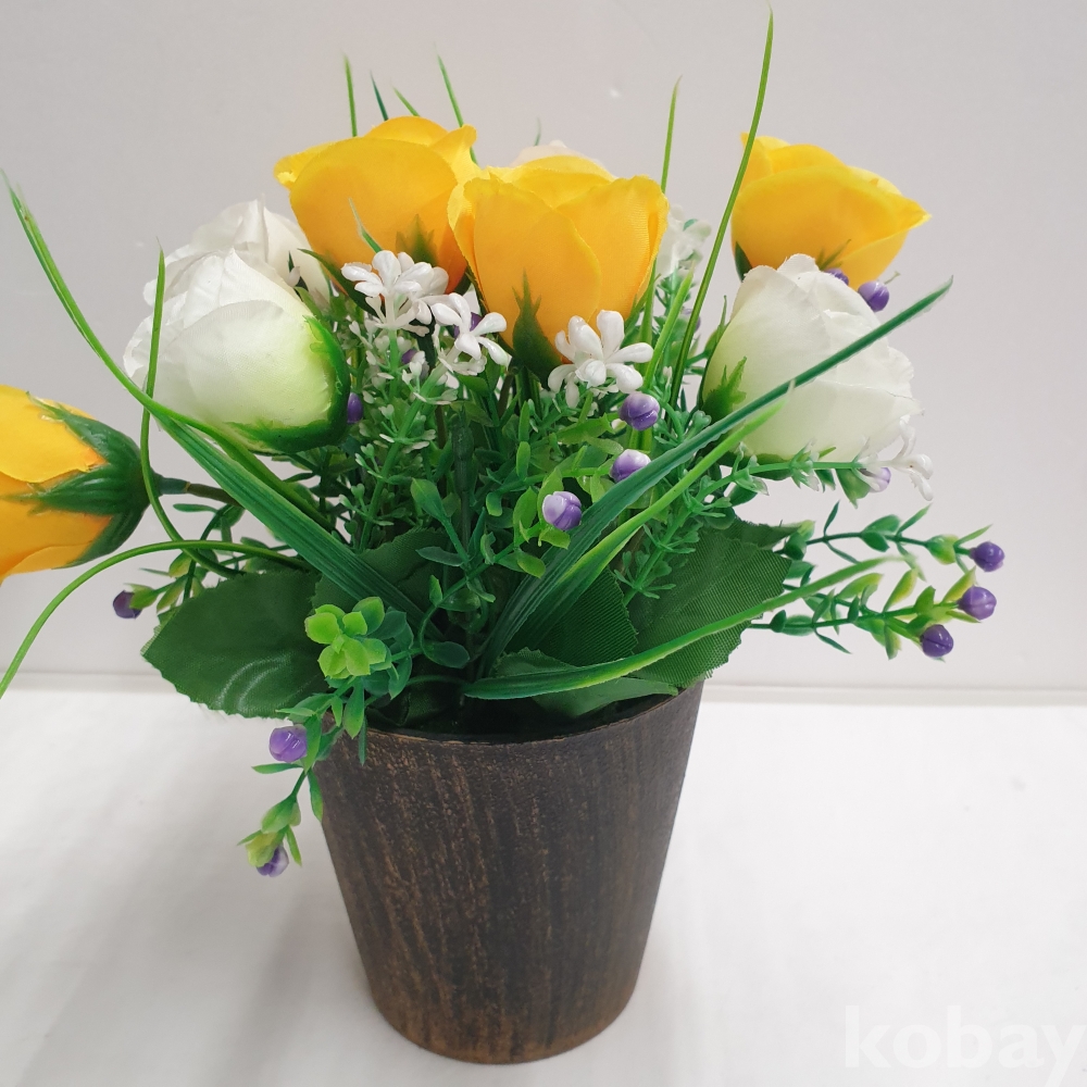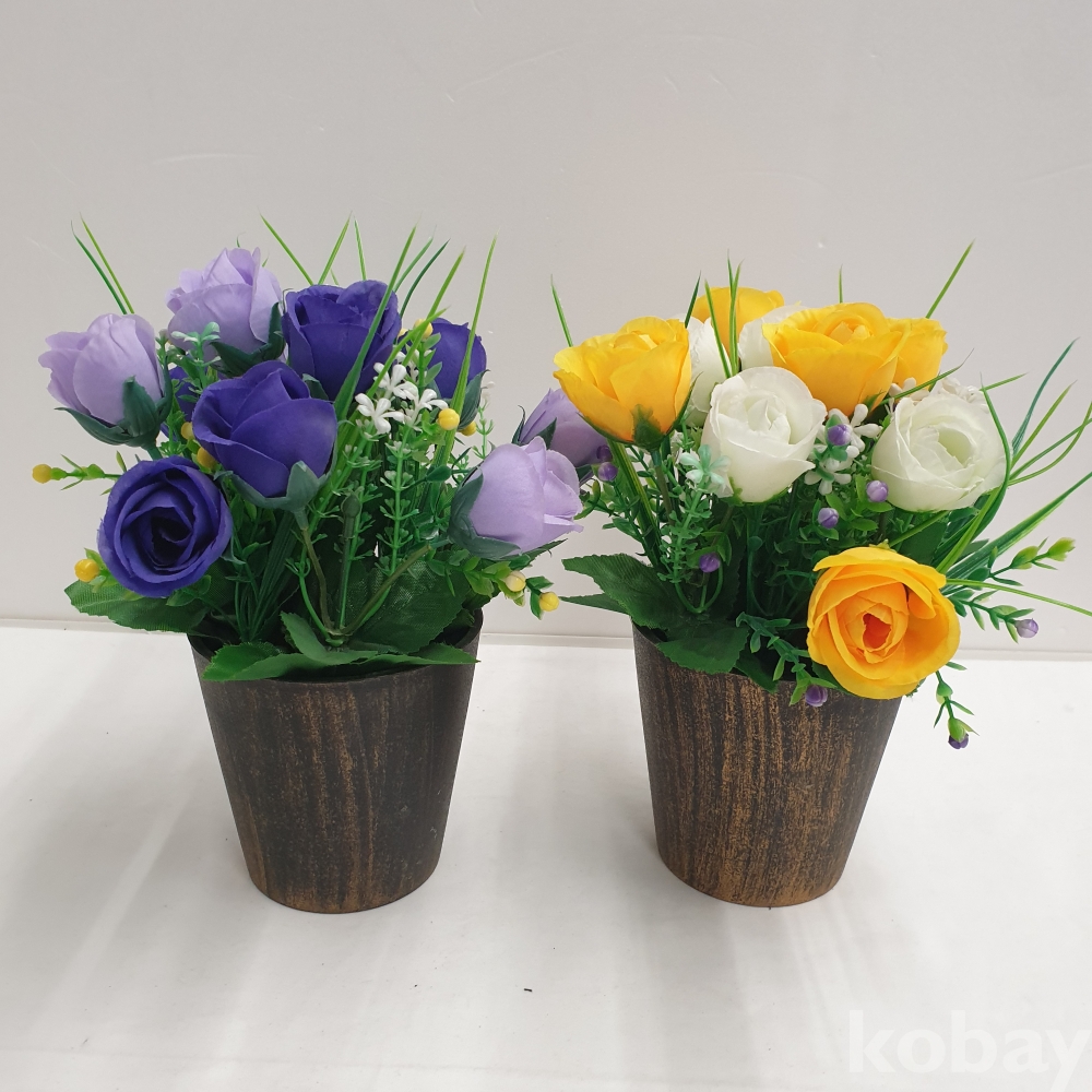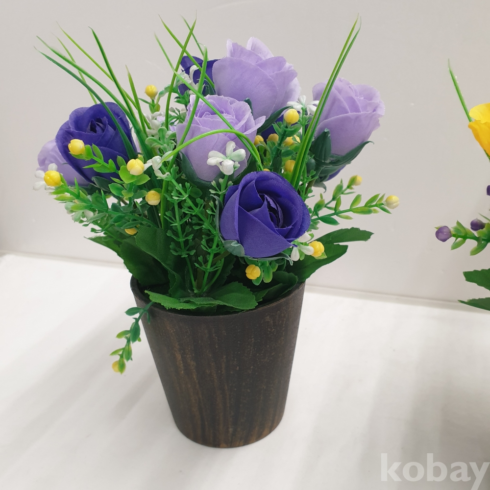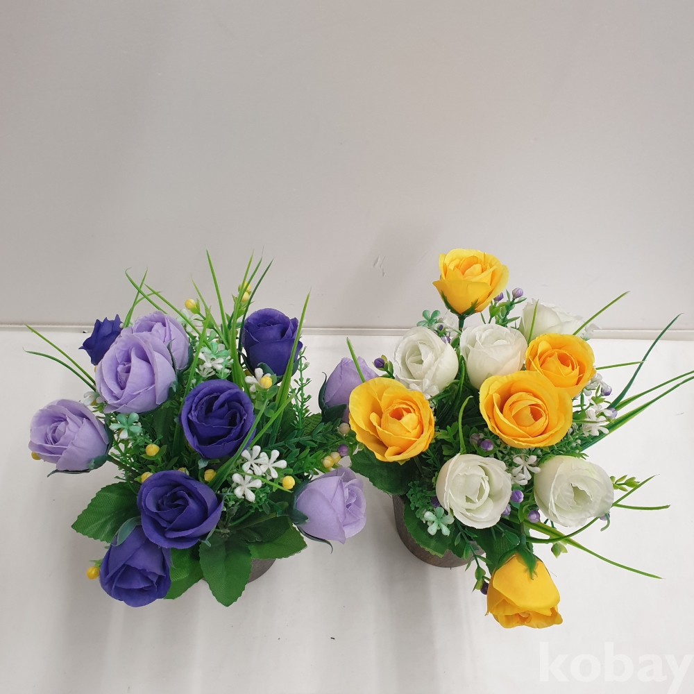 [*천원행복*] J - 4 - 0777 조화 꽃 화분 2개(노랑1, 보라1 , 길이 약 27, 미사용)