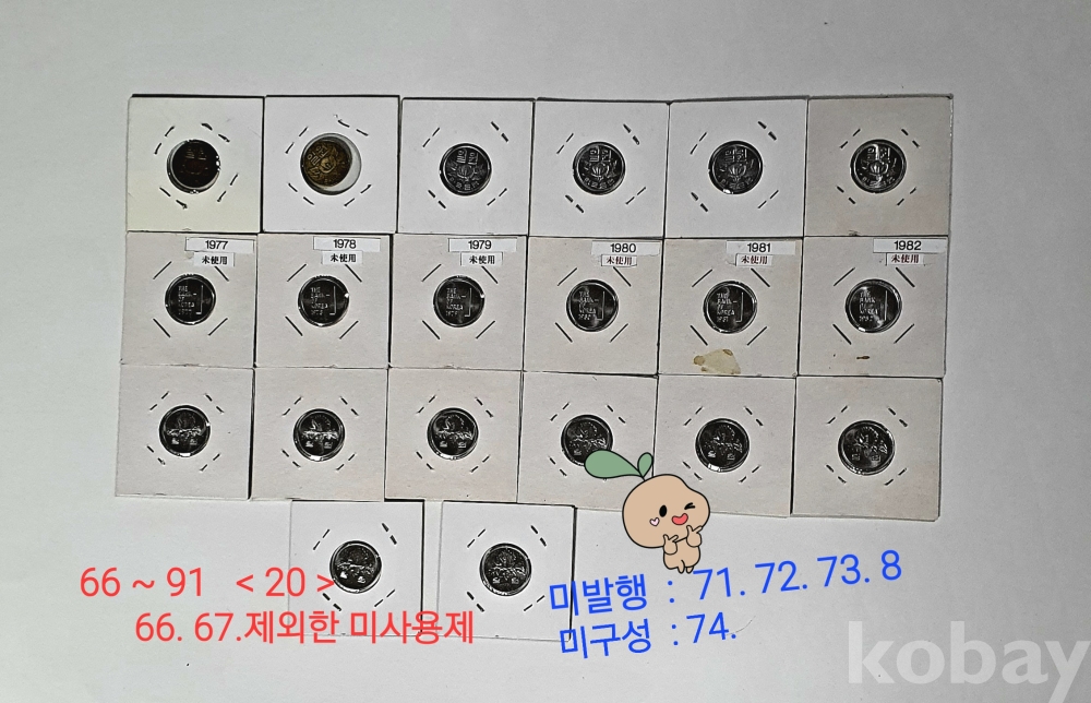 현용주화 1원 20개년 풀세트 <1966년 부터 2091년까지 >