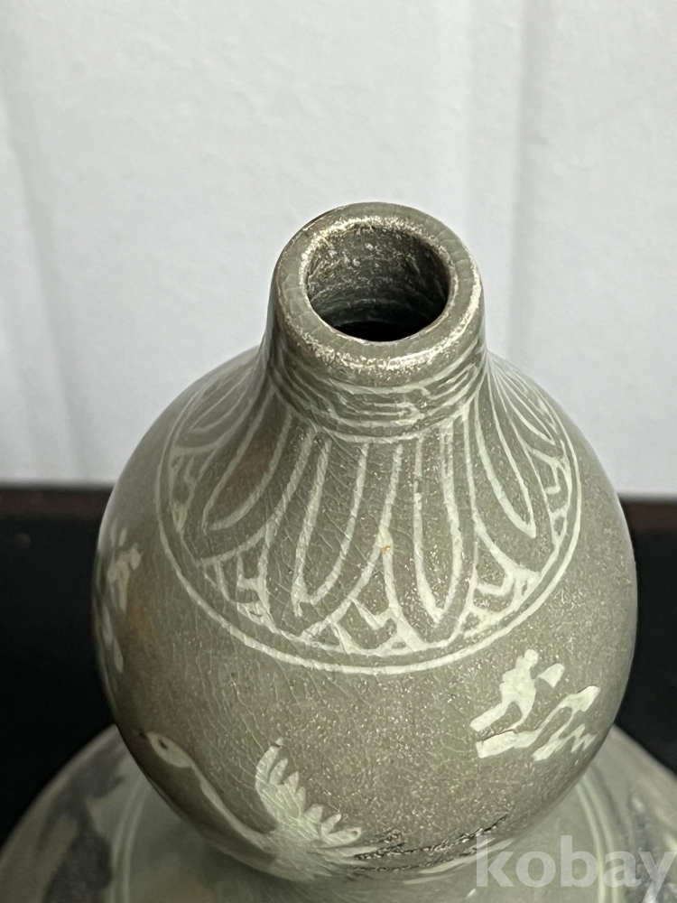 상감 기법이 정교하게 시문된 청자 호리병입니다.
