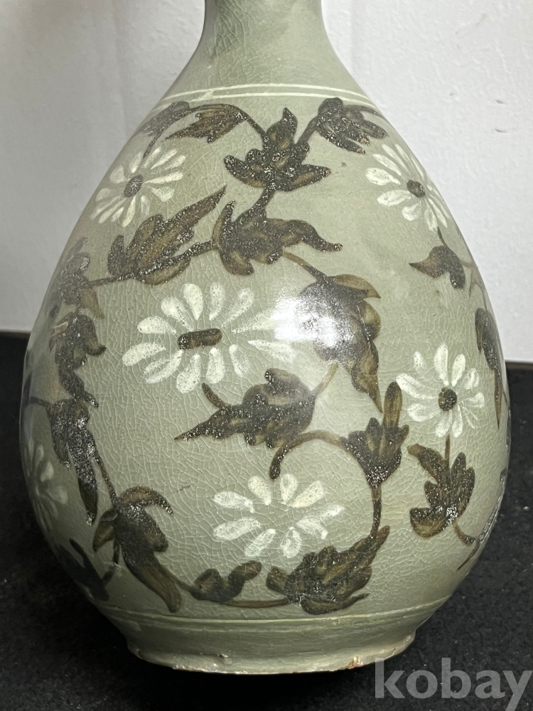 문양: 철화 조류문 + 백토 인화 국화문