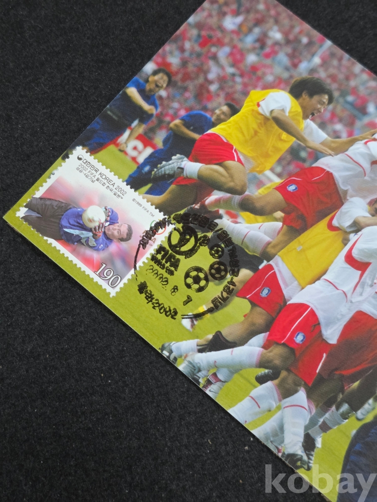 (((우편엽서/사진엽서/월드컵자료))) 2002 FIFA 월드컵 우표부착 월드컵전사 칼라사진 엽서 (기념인소인)