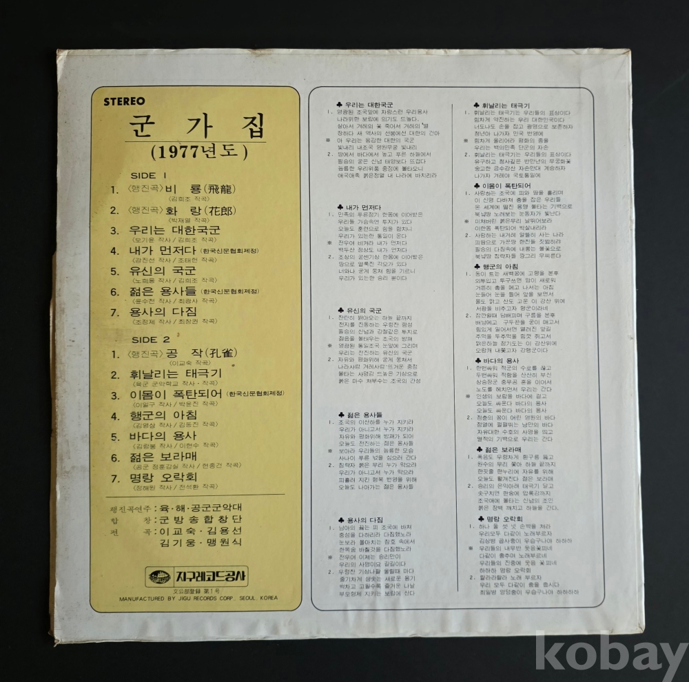1977년 국방부 군가집 레코드판 입니다