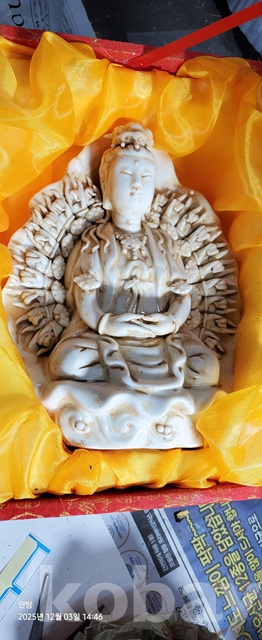 d-36.상자에담긴 오래된 천수손 약사여래불상도자기