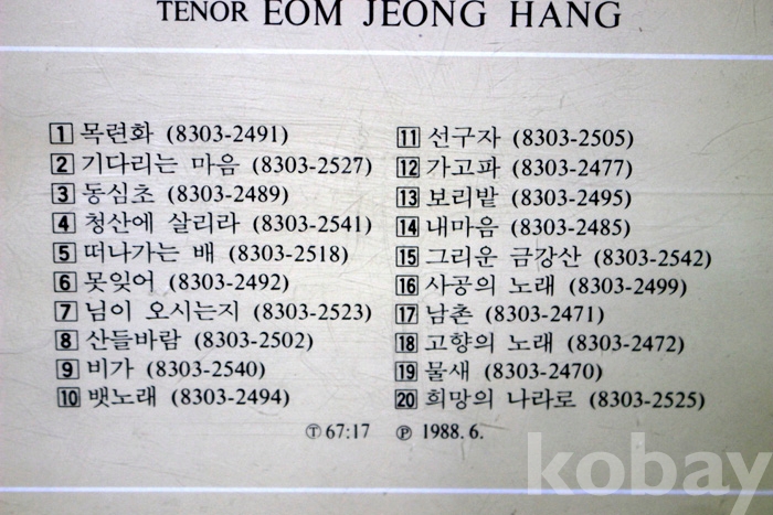 수록 곡 목은 사진을 참조하시기 바랍니다