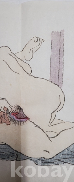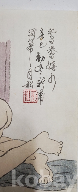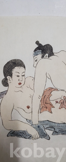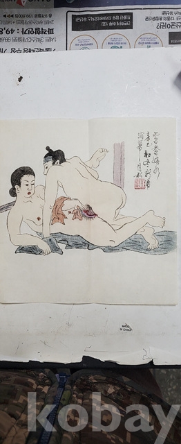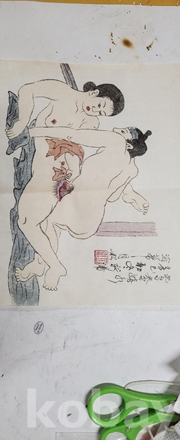 나-109.오래된 닥나무한지에그린인쇄가이닌 실체그린춘화도