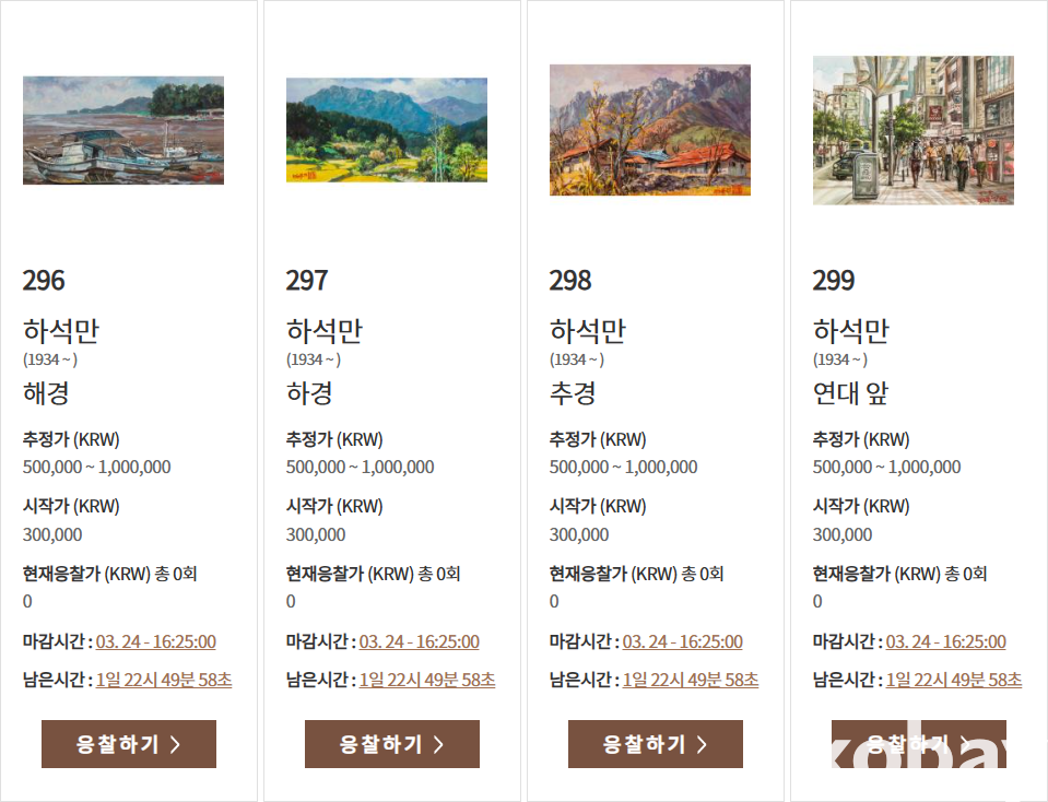 기타: 동일 작가의 최근 아이옥션 출품 사례 확인됨(사진 참조), 블로그 참고 https://blog.naver.com/hasmgallery/220279108695